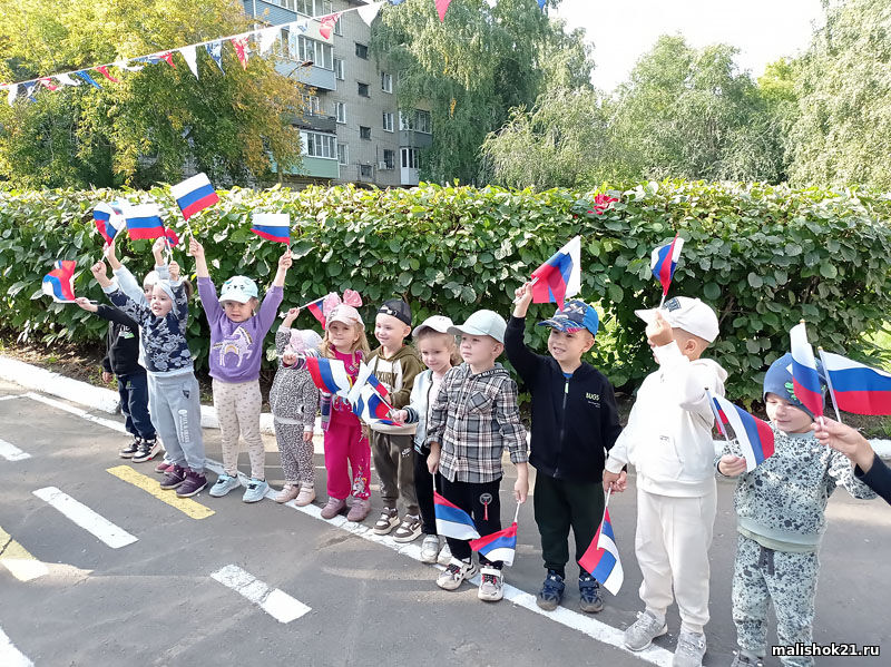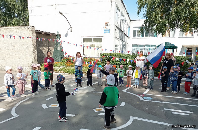 В этот день в детском саду прошло развлекательное мероприятие «Под флагом России мы дружная семья», на котором воспитанники групп «Ромашка», «Улыбка», «Подсолнушек», «Рябинка» узнали об истории появления Российского флага и его значимости для нашего государства. Дети с чувством гордости исполняли песни о мире, Родине, собирали триколор флага России, читали стихи, слушали гимн нашей страны, поиграли в любимые народные игры, исполнили хоровод «Березонька».