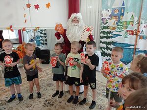 Ребята старших групп «Улыбка», «Ромашка» отпраздновали день рождения главного волшебника страны - Деда Мороза! Они узнали, что Дед Мороз живет на севере в городе Великий Устюг. Живет он в настоящем тереме, у него есть внучка - Снегурочка, а ездит он на санях, запряженных в тройку лошадей. К ним в гости пришел настоящий Дед Мороз! И, конечно, дошколята не оставили Дедушку Мороза без подарка - поздравили с днём рождения, спели ему каравай, прочитали стихи, пожелали здоровья и много счастья. Каждый ребенок в этот день сделал подарок Дедушке Морозу - варежки, картинки с пожеланиями, а ещё нарисовали ему рисунки с подарками и пригласили в детский сад на Новогодний праздник.