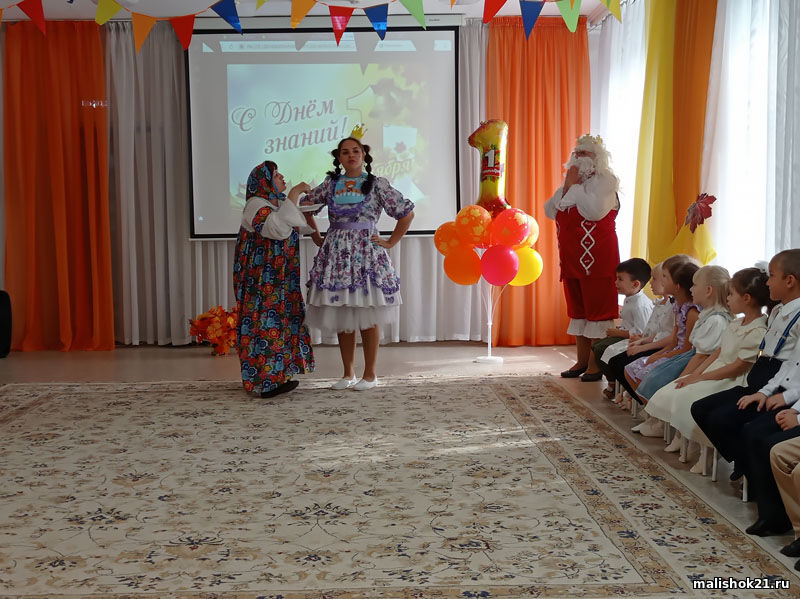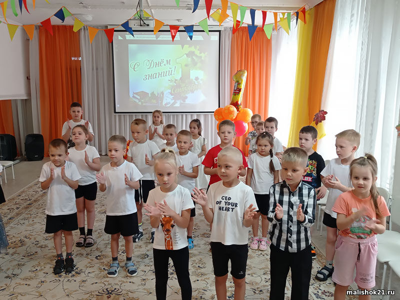В этот день для воспитанников групп «Кораблик», «Подсолнушки», «Пчелка», «Колокольчик», «Улыбка», «Ромашка», «Теремок», «Рябинка» педагоги устроили настоящий праздник, посвящённые Дню знаний. С любимыми героями Незнайкой (воспитатель Воробьева А.А.); Королем (воспитатель Слепцова Н.В.) из сказочного королевства и капризной принцессой (воспитатель Цвахина Г.В.) дети участвовали в играх, разгадывали загадки, пели песни, танцевали, играли в бумажном оркестре, много шутили и смеялись. Всем было очень весело и радостно!