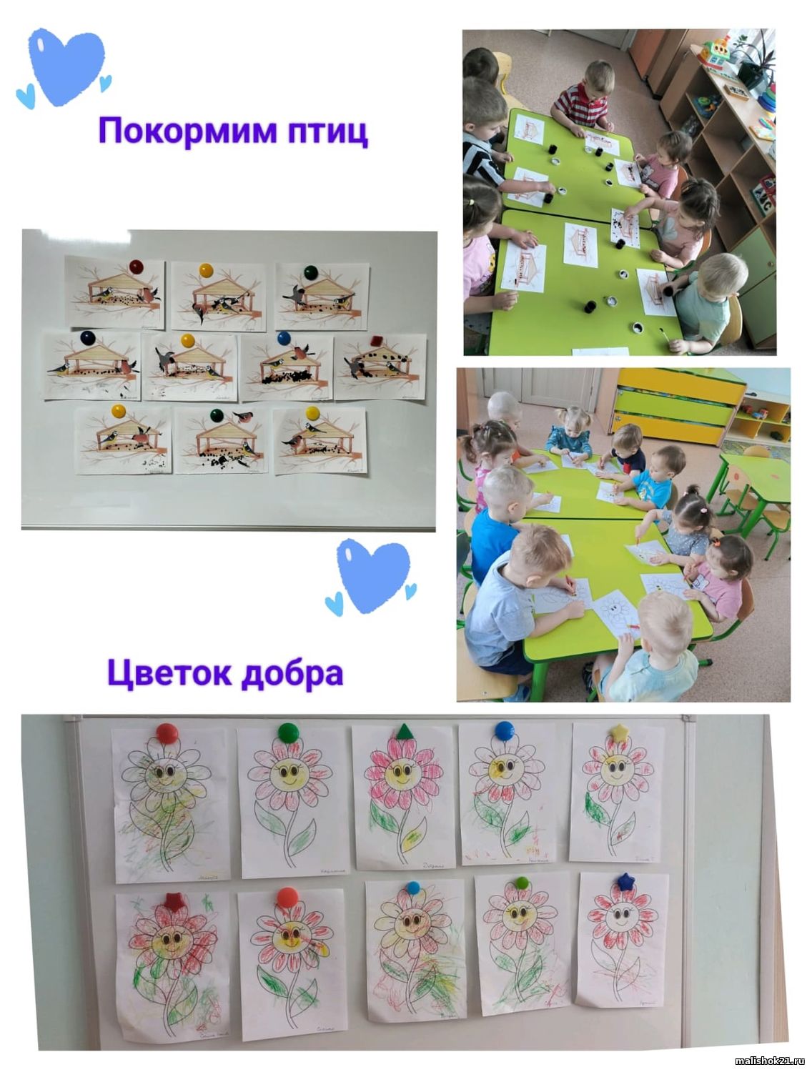 К этому дню в младшей группе «Шустрики» (воспитатели Николаева С.В., Кистер Е.К.) реализовался проект: "Неделя доброты". Дети слушали сказки, песни о доброте, о добрых поступках и заботливом отношении друг к другу. Малыши раскрашивали "Цветок добра", лепили из пластилина угощения для друзей, играли в дидактические и подвижные игры, изготавливали аппликацию из пластилина "Сердечко", участвовали в коллективной работе "Солнышко дружбы".