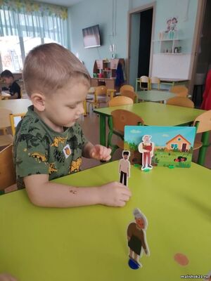 В гости к детям приходил Мишутка с рассказом о своей семье, традициях. Малыши с большим удовольствием выполняли интересные задания и помогали Мишутке найти семью. С ребятами были проведены беседы на темы: "Я и моя семья", "Есть ли у животных семья?", "Мои бабушка и дедушка". Воспитанники вспоминали как зовут их маму, папу, бабушку и дедушку. Дети рассматривали картинки с изображениями членов семьи и их занятий, слушали сказку "Три медведя", играли в игры "Здравствуйте, ребята!", "Семья", "Кому что подходит", "Кто живёт у нас в квартире" и др., рассматривали фотографии, играли в пальчиковые игры.