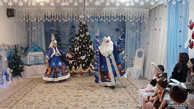 И вот чудо свершилось! Дед Мороз пожаловал к своим друзьям на праздник. Началось настоящее веселье: песни, пляски, хороводы и весёлые игры вокруг нарядной ёлочки!