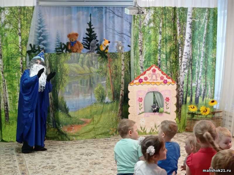 Воспитанники детского сада посмотрели постановку сказки «Теремок». Это интересная, позитивная, добрая сказка. В ней рассказывается, как стали жить вместе дружные, гостеприимные, трудолюбивые звери.