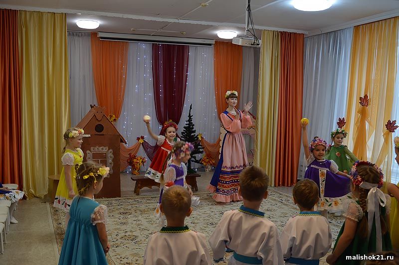 Воспитанники старших групп «Сказка» и «Звездочка» приготовили в подарок театралиованную постановку русской народной сказки «Гуси-лебеди». Подготовили сказку с детьми музыкальный руководитель Ларионова Тамара Ивановна, воспитатели групп Канакина Наталья Ивановна, Корепанова Кристина Валериевна, Валиева Ольга Олеговна. Красивое, яркое, эмоциональное получилось представление и благодаря героям исполнившим роли бабы Яги (Аня Чугунова, Канакина Н.И.), главного гуся (Воробьева А.А.). Остальные роли сказки исполняли дети. Яркие, эмоциональные, в красивых костюмах в русском народном стиле, они смогли передать зрителям всю трагичность сказки и искреннюю радость от того, что Аленушка справилась со всеми испытаниями и самостоятельно выручила братца из беды.