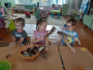 Дети рассматривали иллюстрации с изображением зимующих птиц, читали стихи и рассказы о птицах. Воспитанники хорошо поняли значение пословицы: «Кормите птиц зимой – они помогу вам весной». Оказывается, как важно спасти птиц от голода зимой, чтобы весной они защитили урожай от вредителей! Ведь синица за сутки поедает столько вредных насекомых, сколько весит сама! Они пришли к выводу, что птичек зимой будут постоянно подкармливать. Дети выучили несколько загадок о птицах, нарисовали синичек, сконструировали зимующих птиц из природного материала.