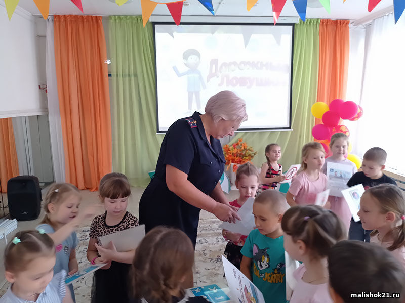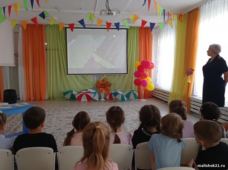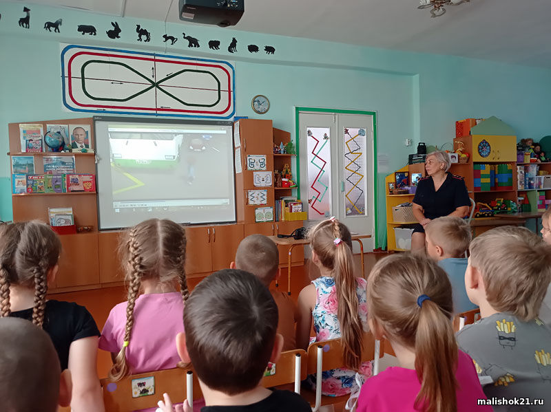 Инспектор напомнила воспитанникам, какие нарушения правил детьми-пешеходами чаще всего приводят к ДТП. Это переход через дорогу вне пешеходного перехода, выход из-за стоящих или движущихся транспортных средств, игнорирование сигналов светофора. Дошкольники закрепили правила перехода проезжей части, Дети отвечали на вопросы, посмотрели познавательные видеоролики.