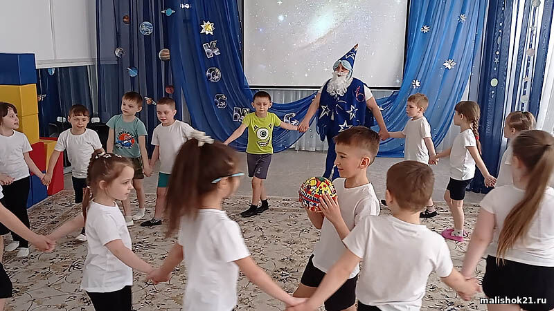 В завершении проекта состоялось развлечение для детей групп «Теремок», «Колокольчик», «Теремок» и «Пчёлка» старшего возраста «Если только захотеть – можно к звездам полететь», где они очутились в гостях у Звездочета, показали свои знания о Космосе. Инопланетянин оказался в беде, ребята помогли ему попасть снова на свою планету. А воспитанники групп «Улыбка», «Ромащка» вместе с Незнайкой совершили загадочное путешествие во Вселенную. Развлечения были яркими, познавательными и веселыми.